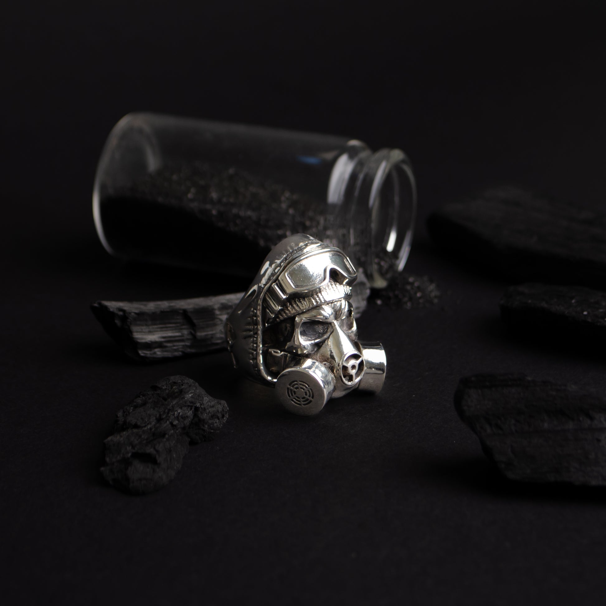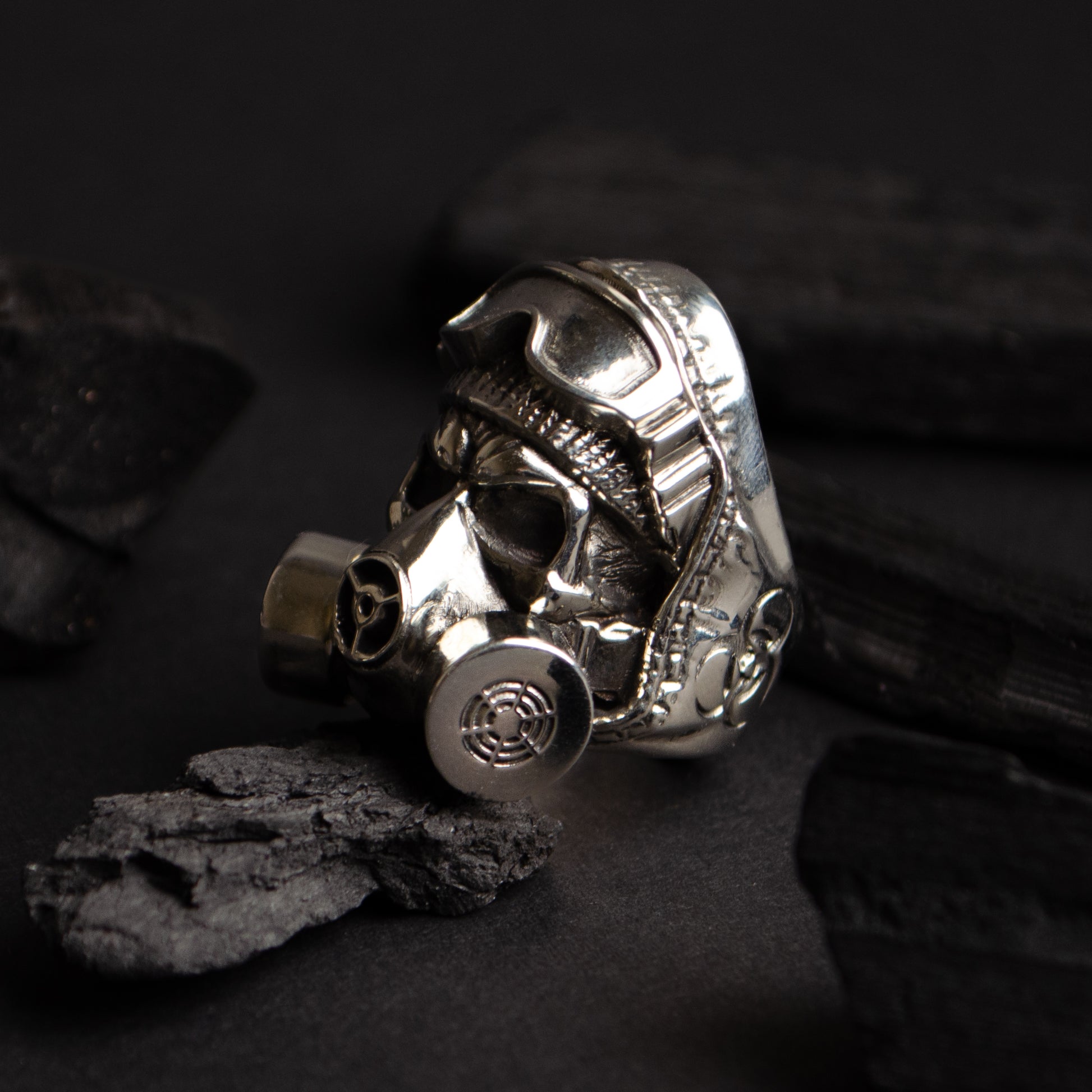 Sterling silver gas mask skull ring